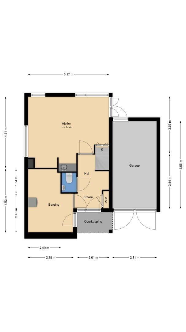Ruime entree, met meterkast, trapopgang en toegang tot een ruime, multifunctionele kamer, thans in gebruik als praktijkruimte met kitchenette (warm en koud water) en dubbele openslaande deuren naar de tuin. Een ideale ruimte om te werken, te ontspannen of gasten te ontvangen. Verder beschikt de begane grond over een toilet (vernieuwd in 2022) en een praktische berging met wasmachine aansluiting. De gehele begane grond is voorzien van een moderne laminaatvloer (2022).