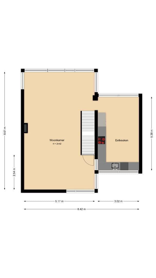 De Branche Brede Meetinstructie is gebaseerd op de NEN2580. De BBMI is bedoeld om een meer eenduidige manier van meten toe te passen voor het geven van een indicatie van de gebruiksoppervlakte. De BBMI sluit verschillen in meetuitkomsten niet volledig uit, door bijvoorbeeld interpretatieverschillen, afrondingen of beperkingen bij het uitvoeren van de meting. Aan de opgegeven maten kunnen geen rechten worden ontleend. Lees de volledige omschrijving